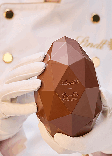 Œufs facettés Lindt 140 g, chocolat fin et cœur praliné, au lait, noisettes ou noir, pour un plaisir gourmand et raffiné.