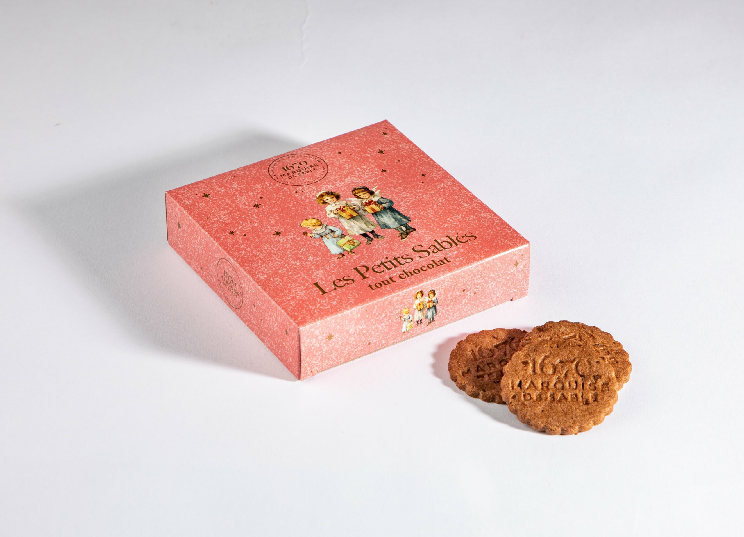 Biscuits sablés tout chocolat, présentés en 4 sachets