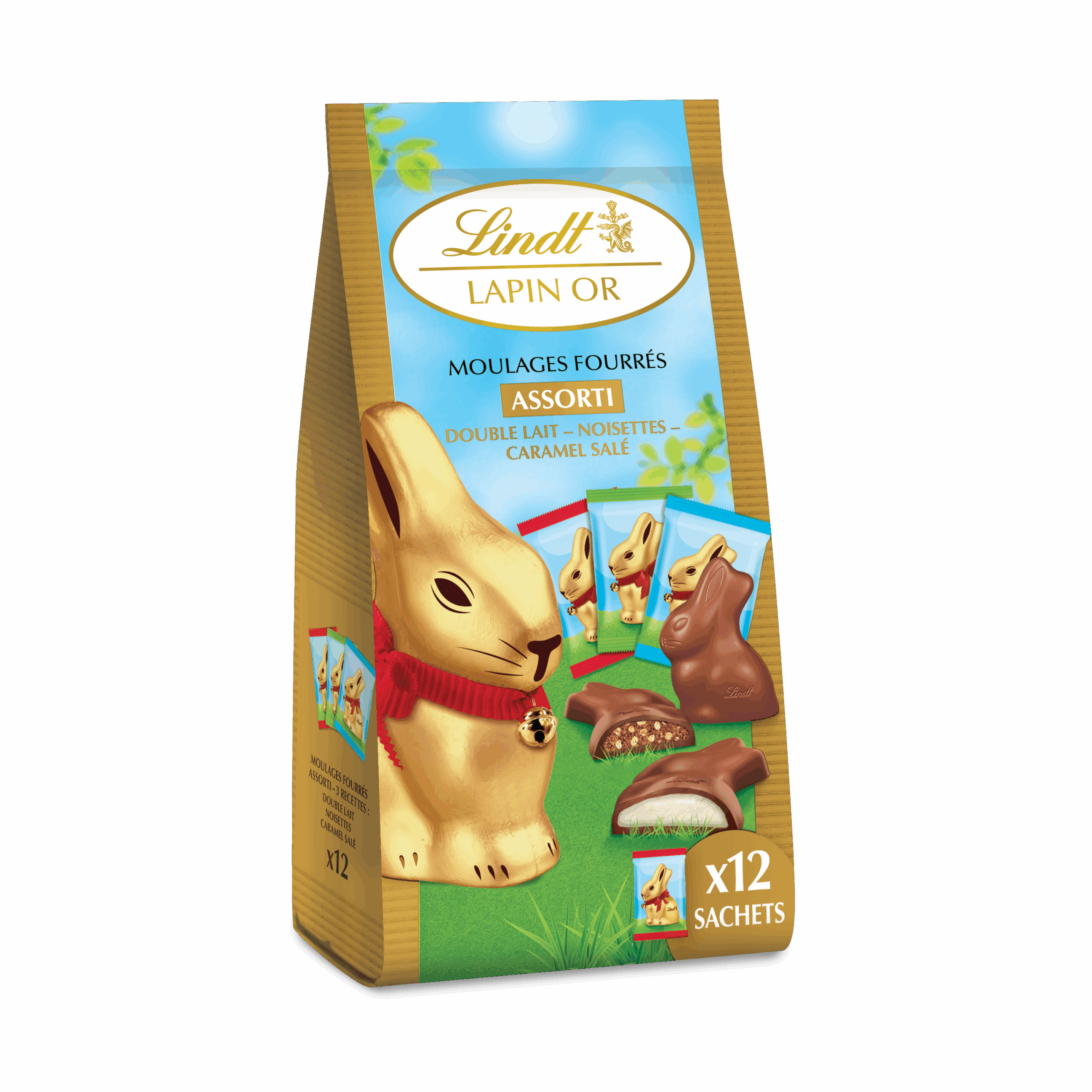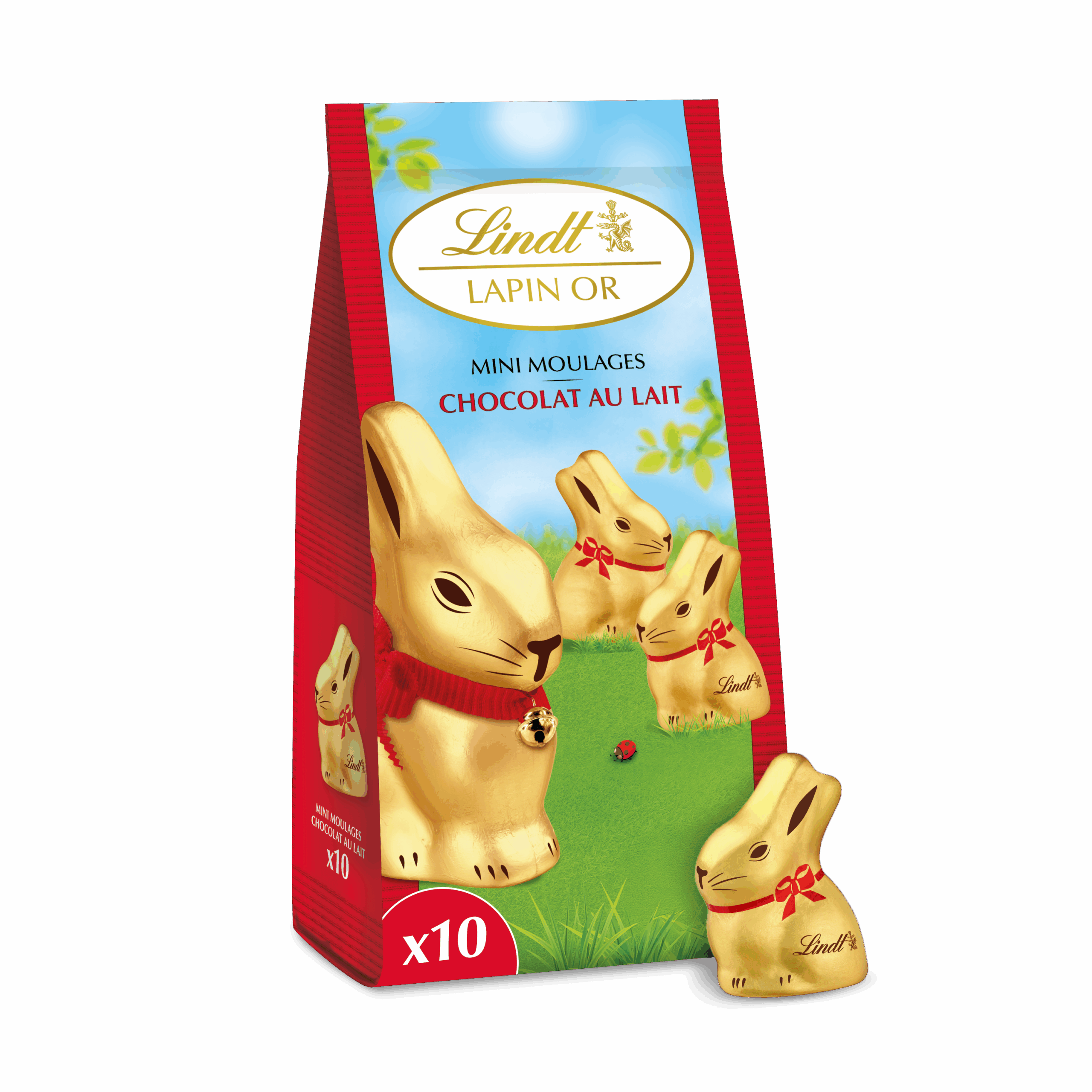 Lapin Lindt au chocolat au lait, fondant et gourmand, à savourer seul, à partager ou à offrir, en sachets de 50 g, 100 g et 200 g.