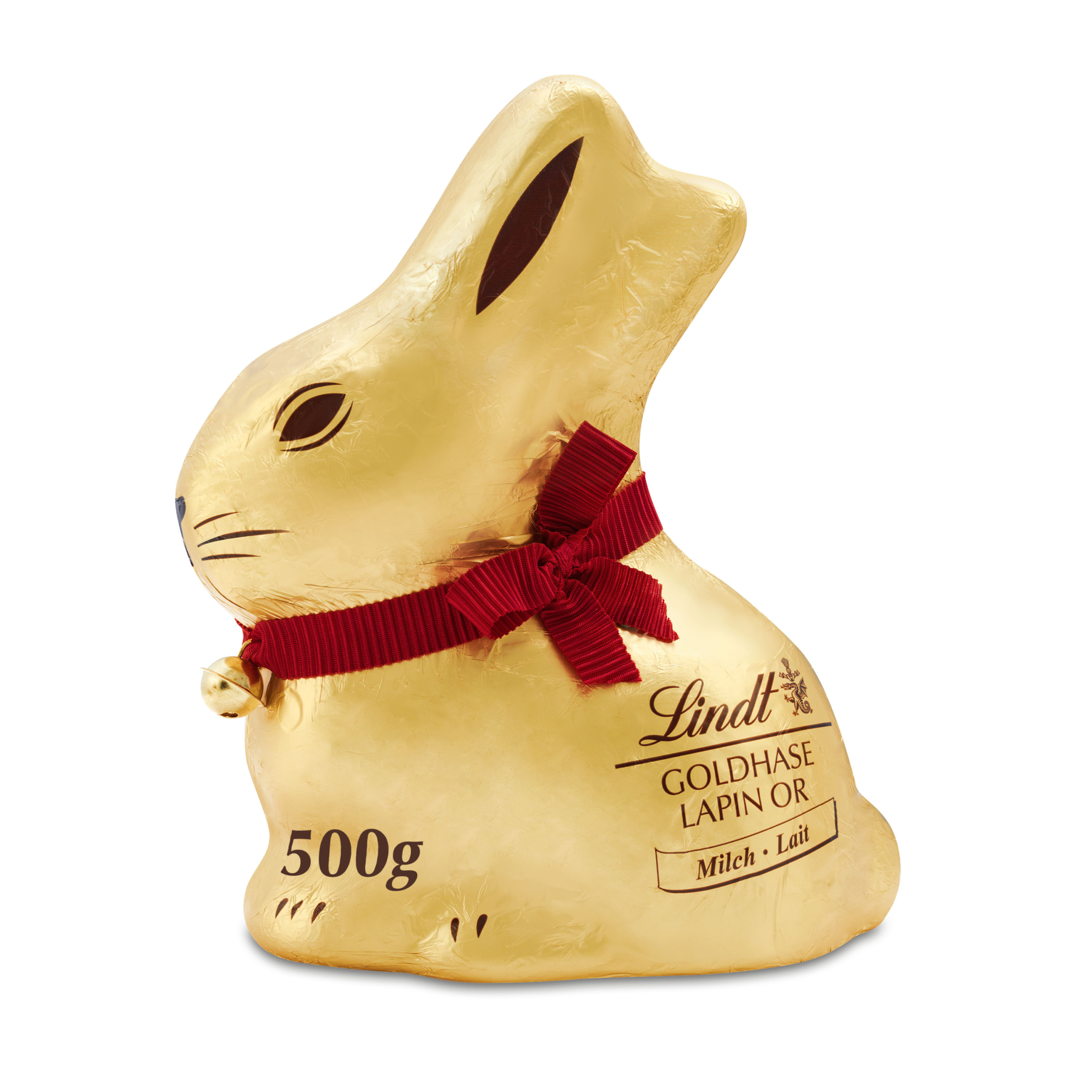 Le lapin Lindt Or 500 g au chocolat au lait, tendre et gourmand, est le compagnon parfait de Pâques pour petits et grands.