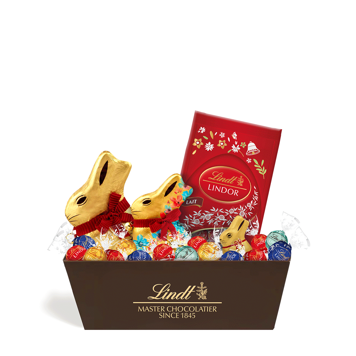 Une élégante panière de chocolats Nuxor Lindt à savourer en version noir, lait ou assorti : un choix généreux pour un moment de plaisir raffiné.