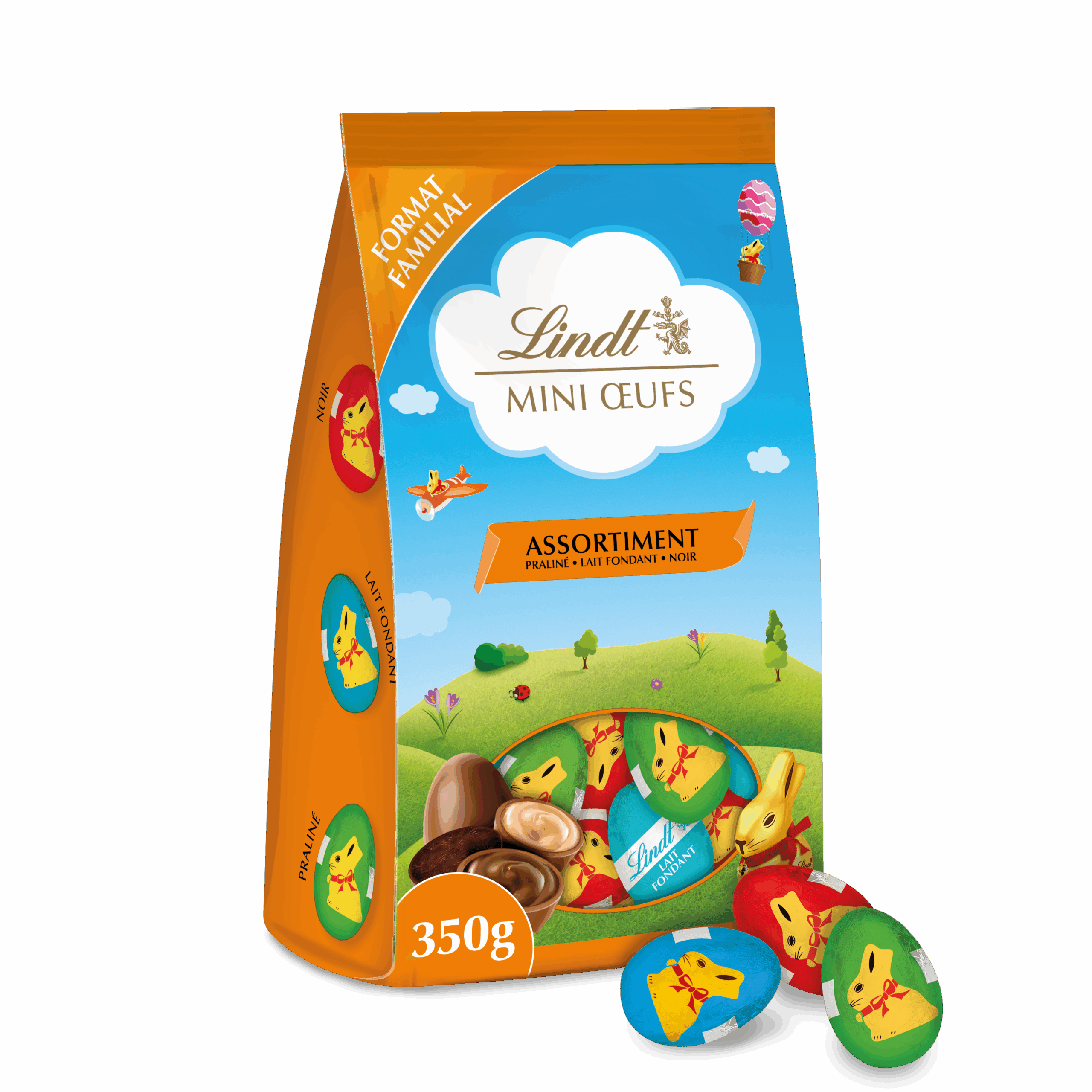 Sachet Mini Œufs Enfant Assorti Lindt 350 g, en deux versions, pour un plaisir gourmand et ludique.