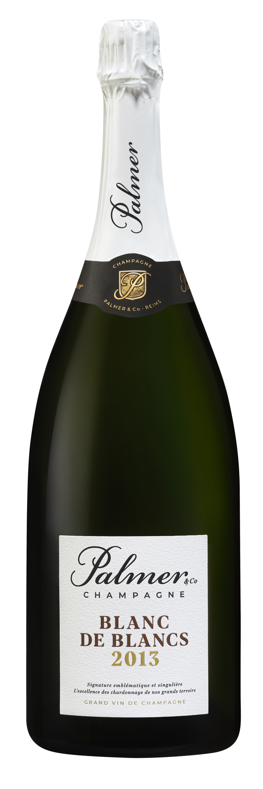 Champagne Palmer & Co Blanc de Blancs 2013 en format Magnum, d’une grande finesse et élégance, idéal pour les grandes occasions et les amateurs de cuvées d’exception.