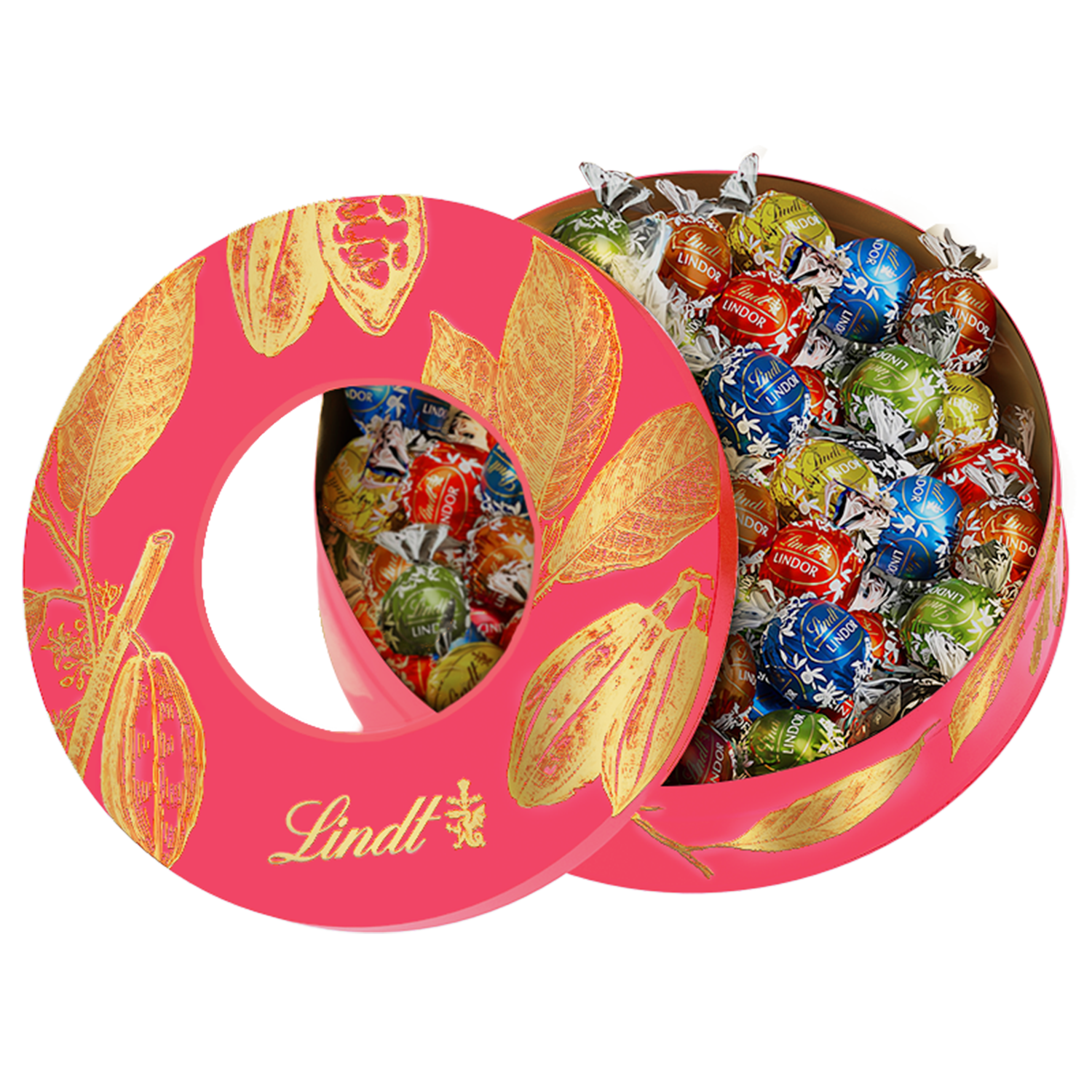 Les boîtes rondes LINDOR 500 g offrent 40 bouchées irrésistibles au chocolat au lait, noir et blanc, renfermant un cœur suprême fondant, créé par les Maîtres Chocolatiers Lindt. Chaque bouchée allie douceur et intensité pour un équilibre parfait de saveurs.