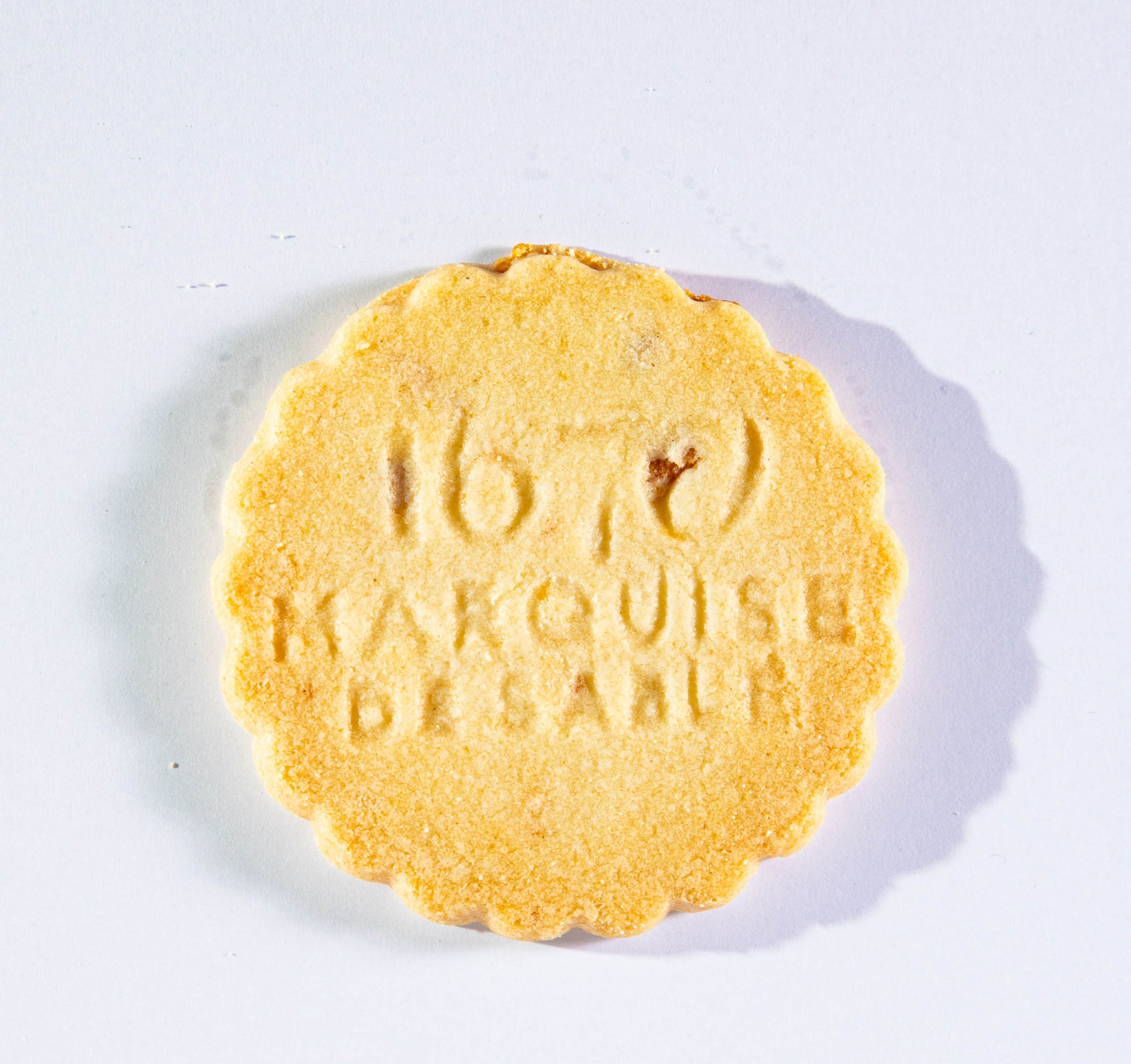 Biscuits sablés pur beurre, délicatement dentelés. Quatre sachets fraîcheur, chacun contenant 4 biscuits, présentés dans un étui carton raffiné « Les Petits Sablés » Marquise de Sablé